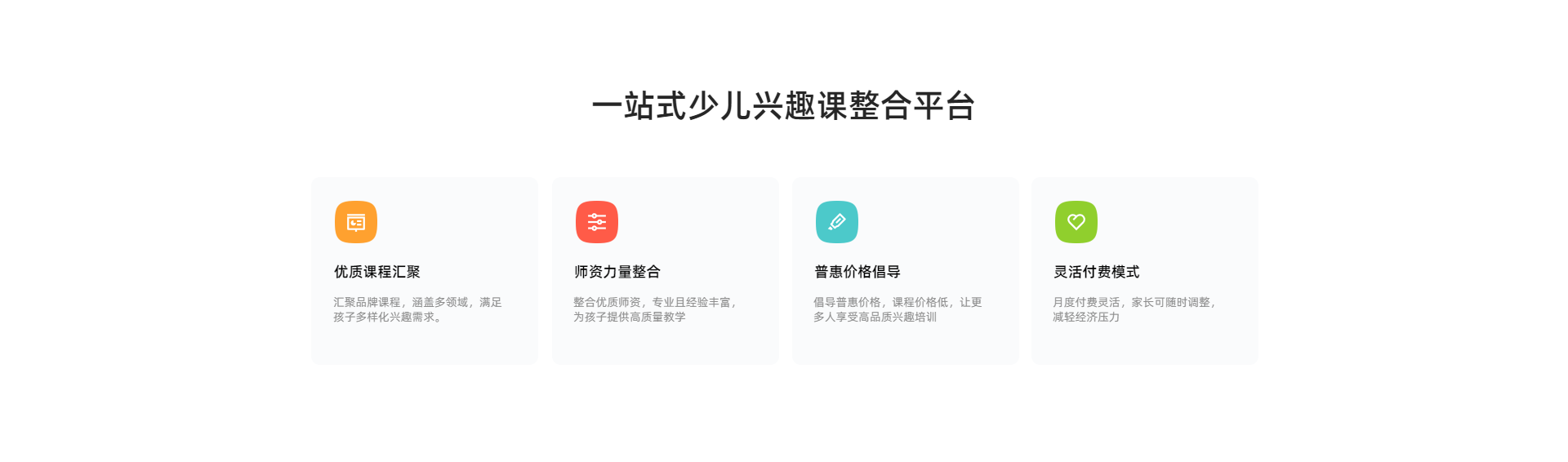 稍萌芽普惠兴趣社—— 一站式少儿兴趣课整合平台 汇聚品牌课程 整合优质师资 倡导普惠价格 所有课程均为西安较低的价格,同时采用月度付费模式,用实惠的价格,让家长和学生享受高品质的兴趣培训课程。